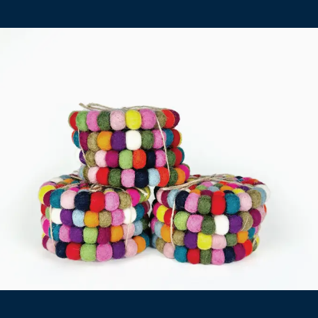 Naturally unique one-of-a-kind, these felt ball coaster sets make a great housewarming or white elephant gift!