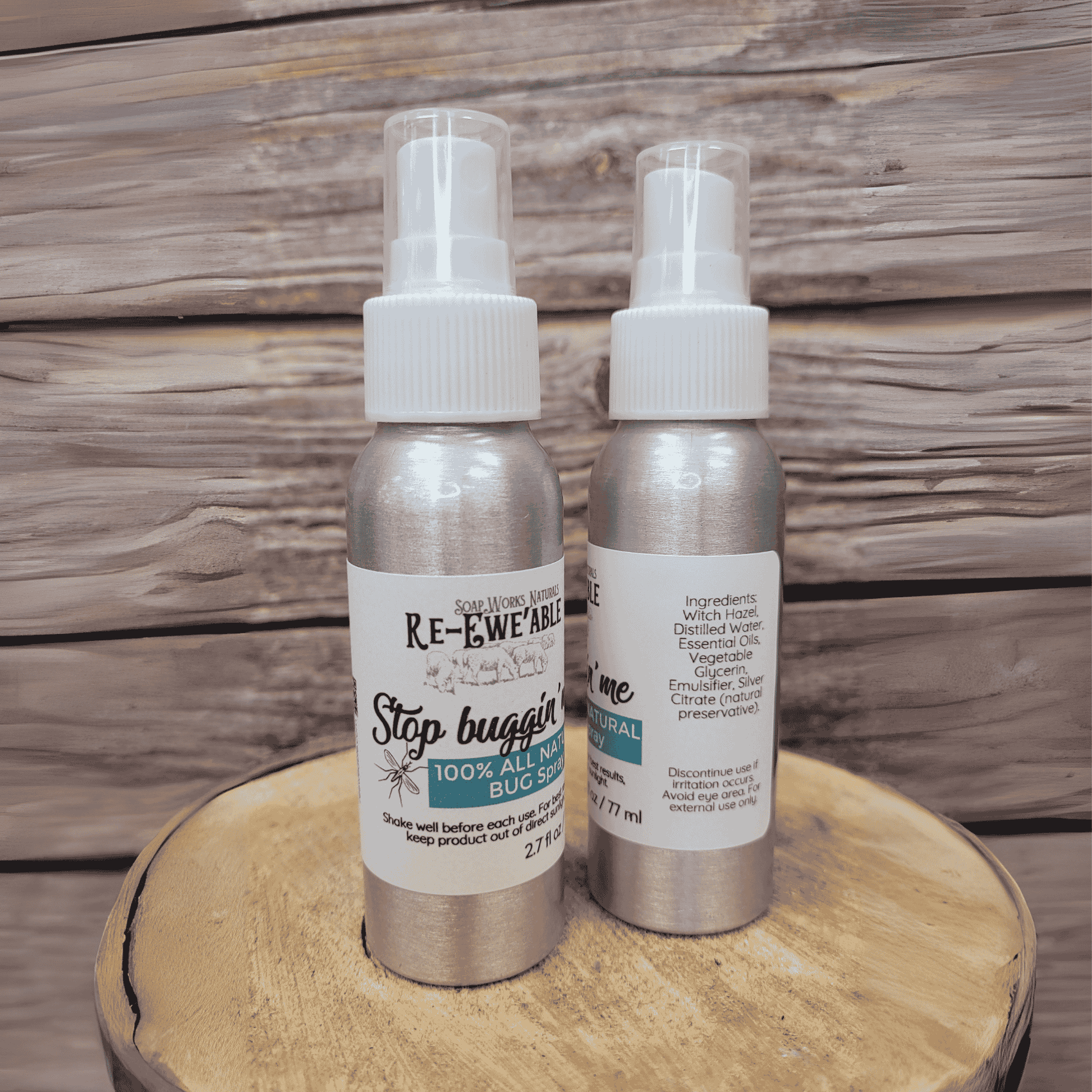 100% All Natural Bug Spray. A secret blend of essential oils combines to deter insects. The easy-to-use spray is packaged in an aluminum fine mist bottle, perfect for a spray on insect protection.